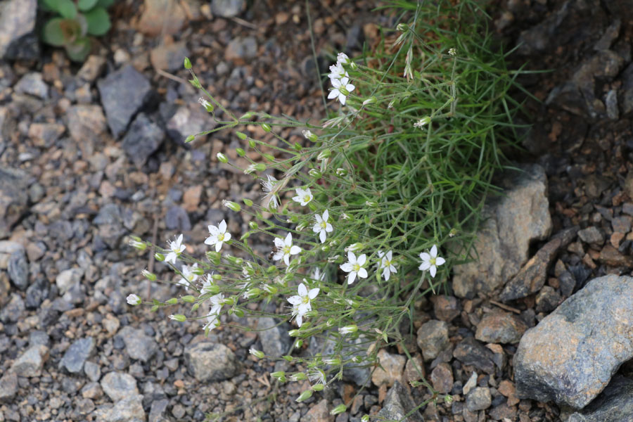 別名、コバノツメクサ(小葉の爪草)。動きの少ない崩壊地や礫地、風衝草原などに生える。花の直径は5~6mmで花びらは5枚の広卵形。高さは2~8cmほどで、茎は良く枝分かれして株を作る。