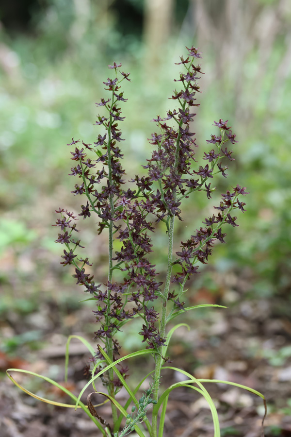 シュロソウの変種で、シュロソウの葉幅が2~4cmあるのに対し、本種の葉幅は0.5~2cmと細い。また花柄もシュロソウよりも細く長い。