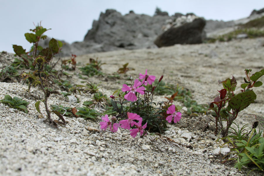 山地の岩場や礫地に生え、高さは20~60cmほど。茎は直立するか垂れ下がり、全体に大きな株を作る。花の直径は2~3cmほどで、不均等な5弁花が特徴である。